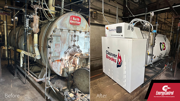 Energy Control removed an antiquated North American Boiler and replaced it with an efficient modular ClearFire-H Steam Boiler with a smaller footprint.
